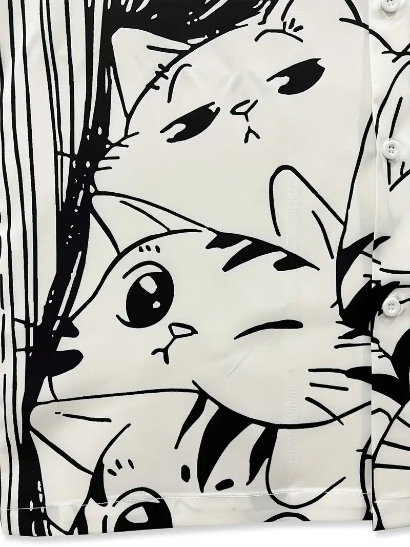 Men'S Casual Shirt with Cute Cat Printed Shirt