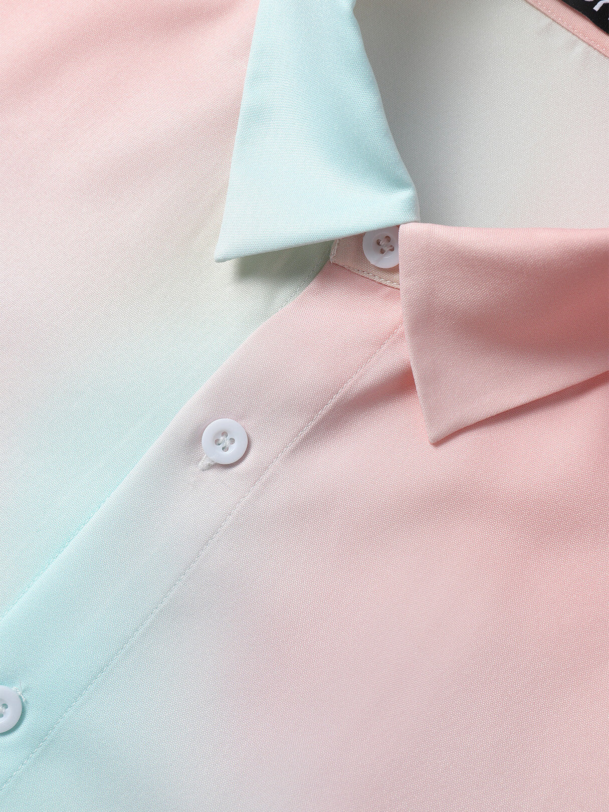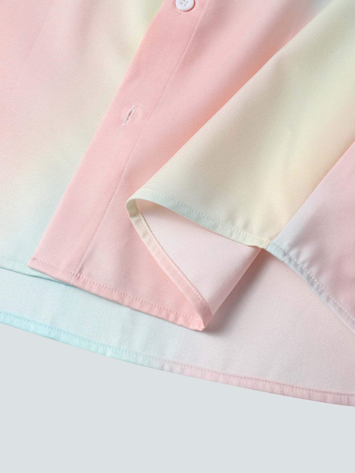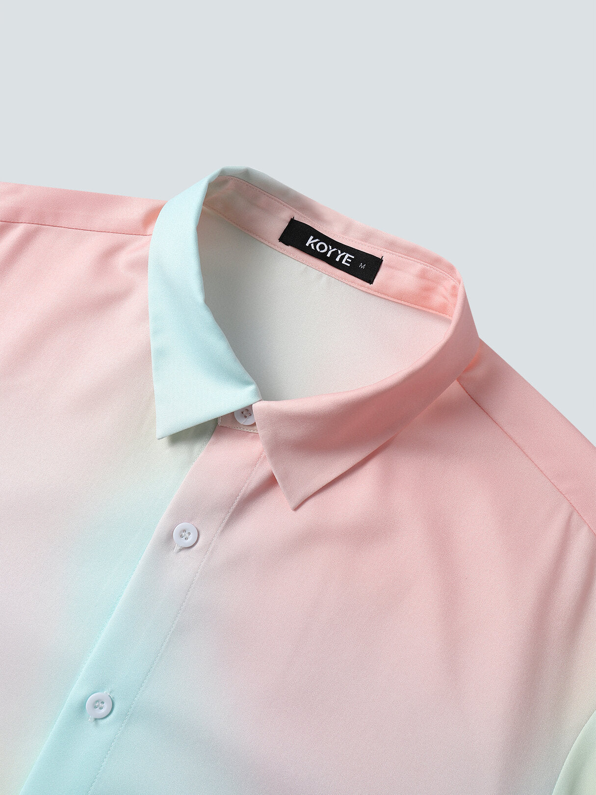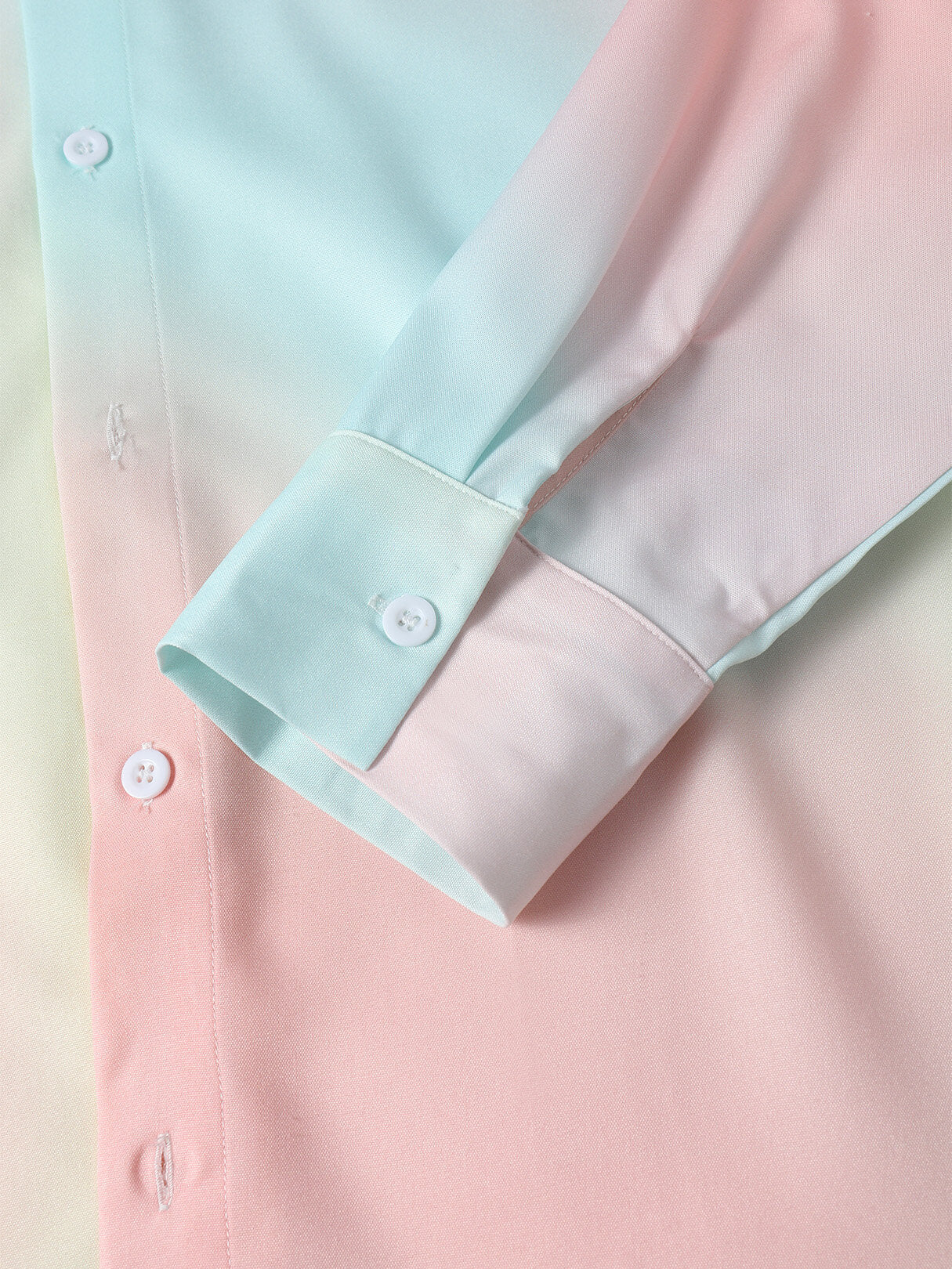 Mens Ombre Tie Dye Lapel Button Up Long Sleeve Shirts