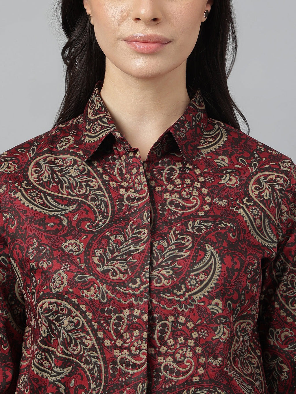 Classic elegance meets modern charm in the Regal Maroon Paisley Shirt. Featuring an intricate paisley design in deep maroon tones with hints of earthy beige and olive, this shirt is a timeless wardrobe staple that radiates sophistication.
